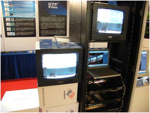 雙絞線傳輸器監(jiān)控系列產(chǎn)品的展示平臺,客戶可以在現(xiàn)場看到兩種視頻效果,一種是攝像機(jī)的本地效果,也就是用同軸線傳輸1米的實(shí)際效果;一種是通過雙絞線傳輸器傳輸1000米的圖像效果,這兩個(gè)效果直接放在一起,利于觀眾的對比。