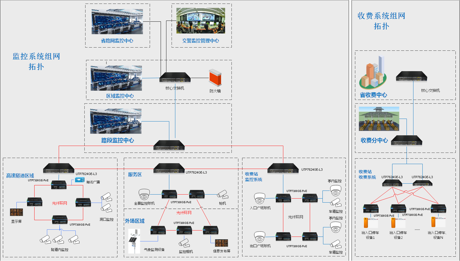 適用場(chǎng)景:收費(fèi)站,服務(wù)區(qū)的核心層傳輸