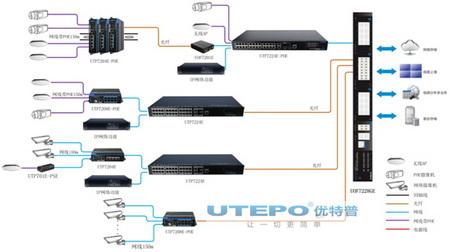 系統(tǒng)用到了優(yōu)特普“網(wǎng)電速聯(lián)”高清監(jiān)控傳輸方案,主要用到了優(yōu)特普4口、8口、24口等PoE交換機(jī)以及安防專(zhuān)用匯聚交換機(jī),實(shí)現(xiàn)從分布式攝像頭的接入到匯聚的過(guò)程,有以下特點(diǎn):