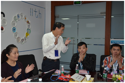 優(yōu)特普公司總經(jīng)理聶懷軍則向考察團(tuán)介紹了優(yōu)特普網(wǎng)電速聯(lián)技術(shù)在物聯(lián)網(wǎng)和智慧城市領(lǐng)域的技術(shù)創(chuàng)新及應(yīng)用,并與考察團(tuán)成員一起探討了物聯(lián)網(wǎng)技術(shù)在傳統(tǒng)制造業(yè)的應(yīng)用價(jià)值,以及網(wǎng)電速聯(lián)技術(shù)在鞋業(yè)領(lǐng)域的產(chǎn)品創(chuàng)想。