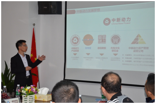 優(yōu)特普公司副總經(jīng)理聶懷春向考察團(tuán)介紹中新動(dòng)力產(chǎn)業(yè)聯(lián)盟