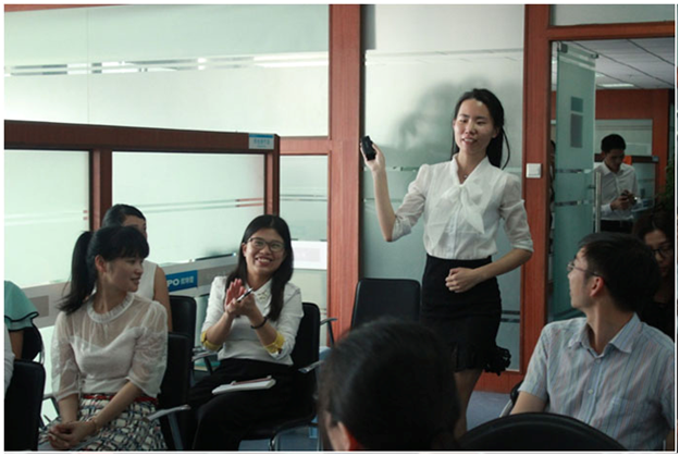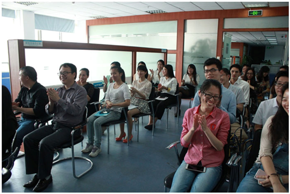員工們?yōu)樾缕钒l(fā)布表示祝賀
