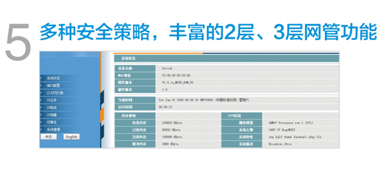 產(chǎn)品支持端口管理、QoS、多播、LACP、RSTP和靜態(tài)路由、RIP、OSPF等2層和3層網(wǎng)絡(luò)及PoE控制Web管理功能,滿足企業(yè)組網(wǎng)對高安全、高智能的管理需求。