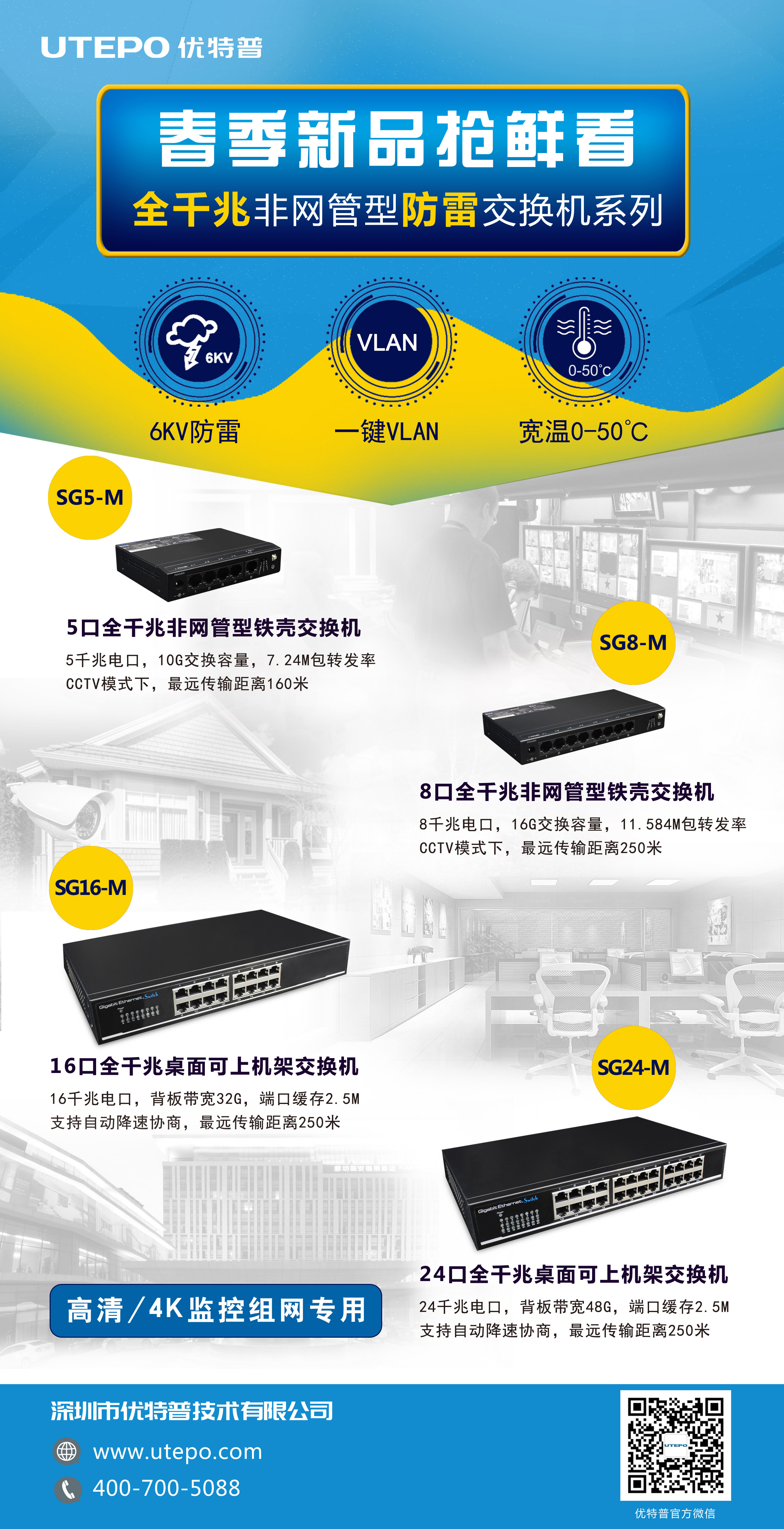 另外,優(yōu)特普剛剛上市的新品——鐵殼全千兆非網(wǎng)管型交換機系列也以其6KV專業(yè)級防雷、大緩存、內(nèi)置電源、操作簡單等特點以及成本優(yōu)勢備受當?shù)乜蛻艏敖?jīng)銷商的關(guān)注。