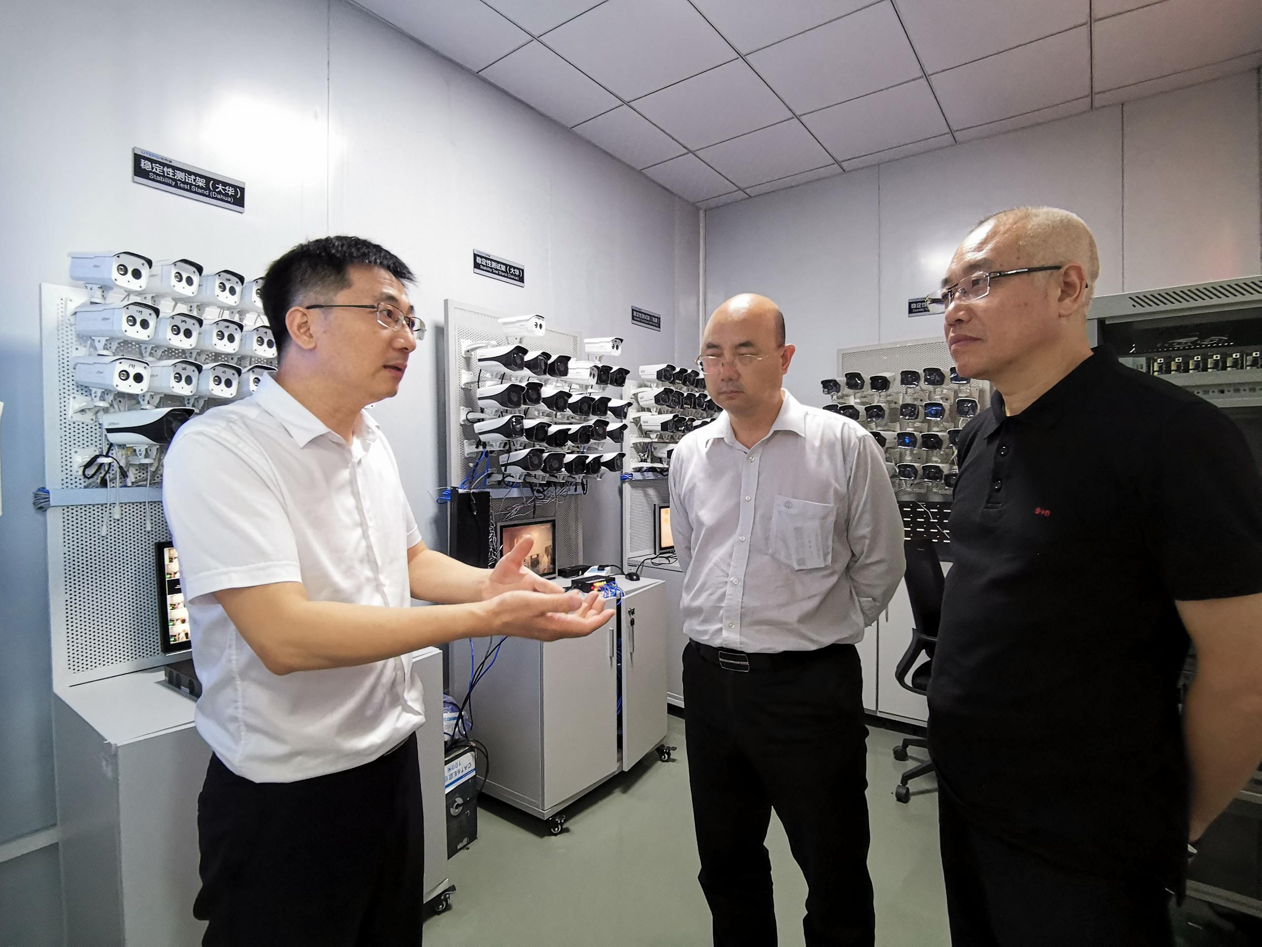 省科技廳廳長(zhǎng)王瑞軍(中)、省統(tǒng)計(jì)局局長(zhǎng)楊新洪(右)參觀優(yōu)特普物聯(lián)網(wǎng)通信實(shí)驗(yàn)室
