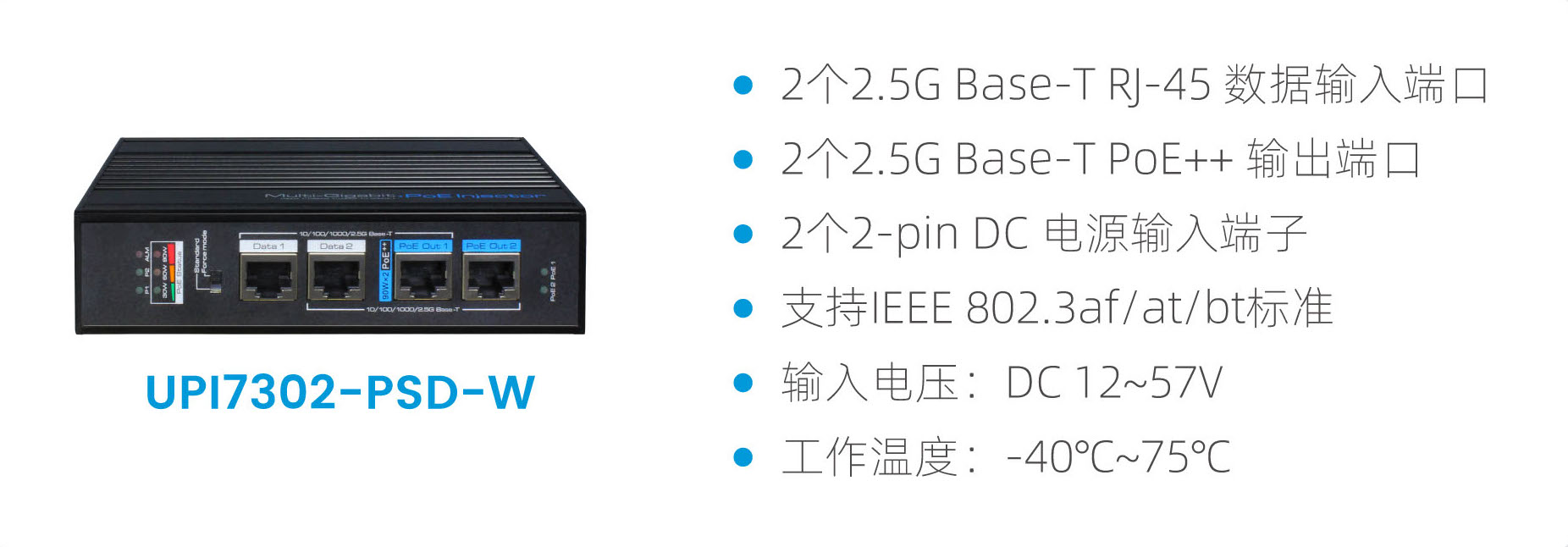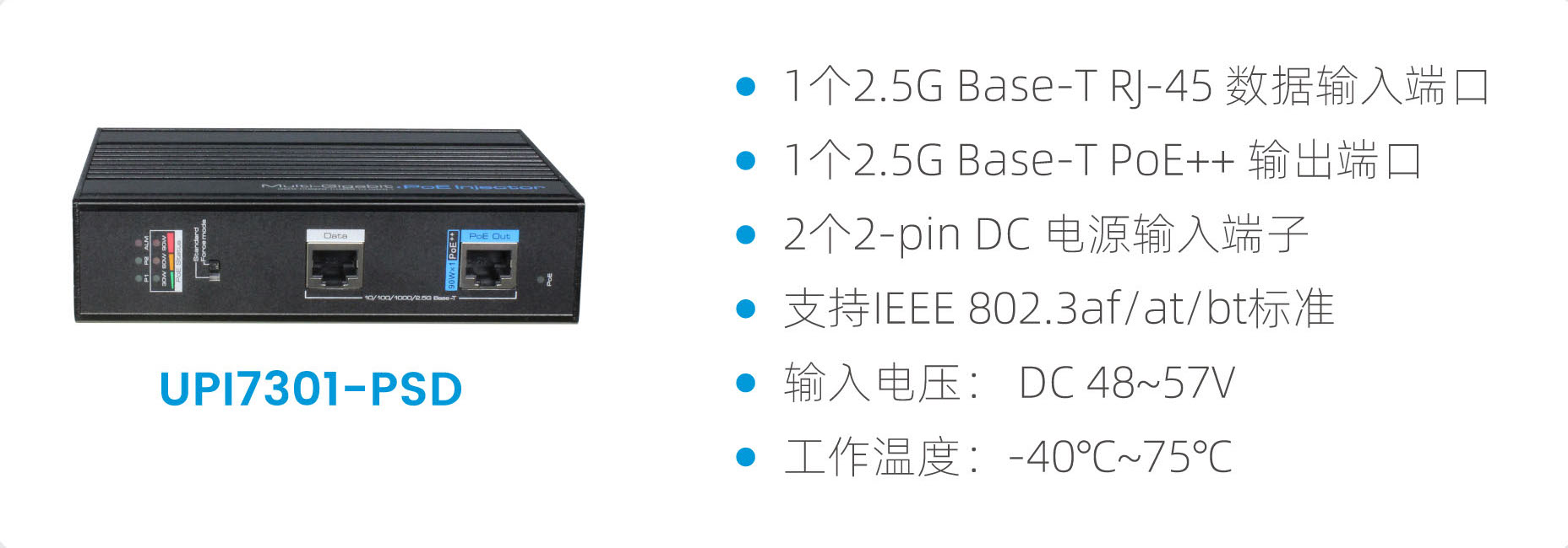 UPI7302-PSD-W和UPI7301-PSD-W均支持寬壓輸入(12V~57V直流電)??筛鶕?jù)實際需求選用不同規(guī)格的電源為設備進行供電。