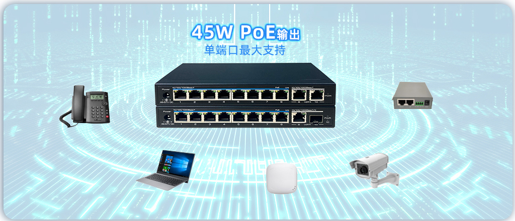 支持PoE供電,兼容IEEE 802.3af/at PoE標(biāo)磚,單端口最大支持45W PoE輸出,可為無(wú)線接入點(diǎn)、網(wǎng)關(guān)、IP電話、監(jiān)控?cái)z像頭等設(shè)備提供穩(wěn)定電源。