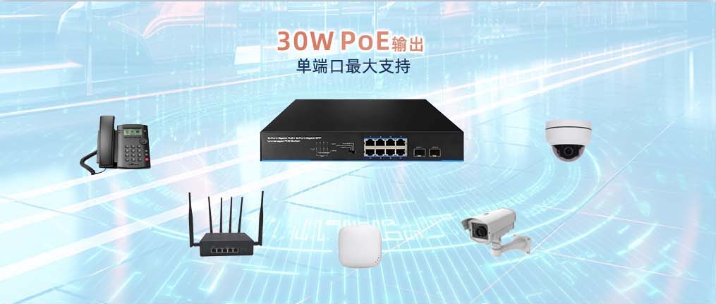 提供PoE供電功能,符合IEEE 802.3af/at PoE標(biāo)準(zhǔn),單個端口最大支持30W的PoE輸出,可為無線接入點(diǎn)、網(wǎng)關(guān)、IP電話、監(jiān)控攝像頭等設(shè)備提供穩(wěn)定的電源。
