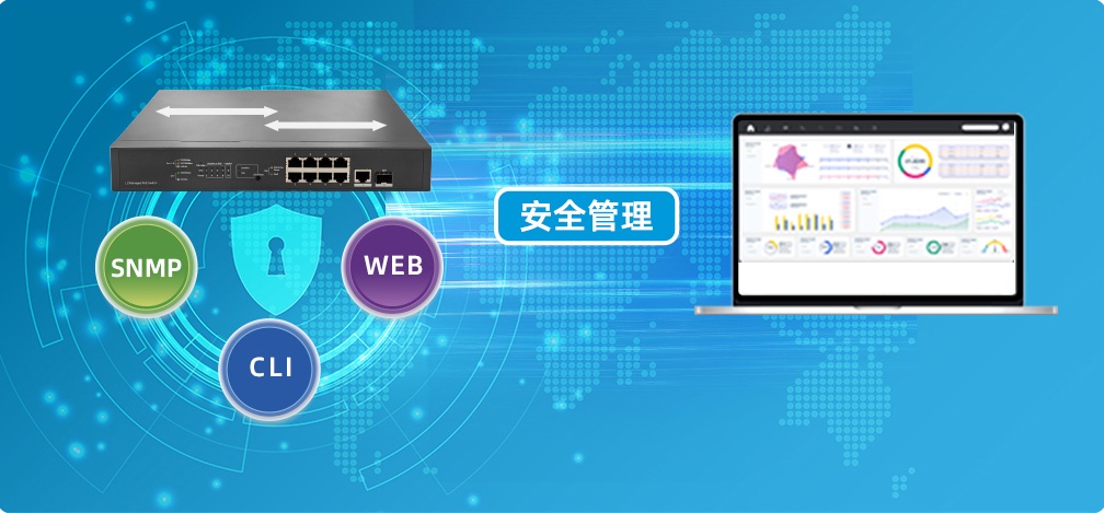可通過WEB管理系統(tǒng)、CLI(telnet/console)、SNMP安全地、輕松地對(duì)其進(jìn)行管理。