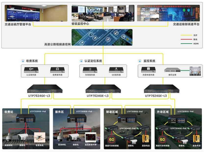 通過對交通業(yè)務狀況的深入分析,優(yōu)特普打造了針對交通復雜環(huán)境,基于PoE供電、PoE看門狗、永久PoE技術、智能自愈等技術工業(yè)級交換機,通過以太網線纜為各終端供電,實現(xiàn)網絡和供電一體化。