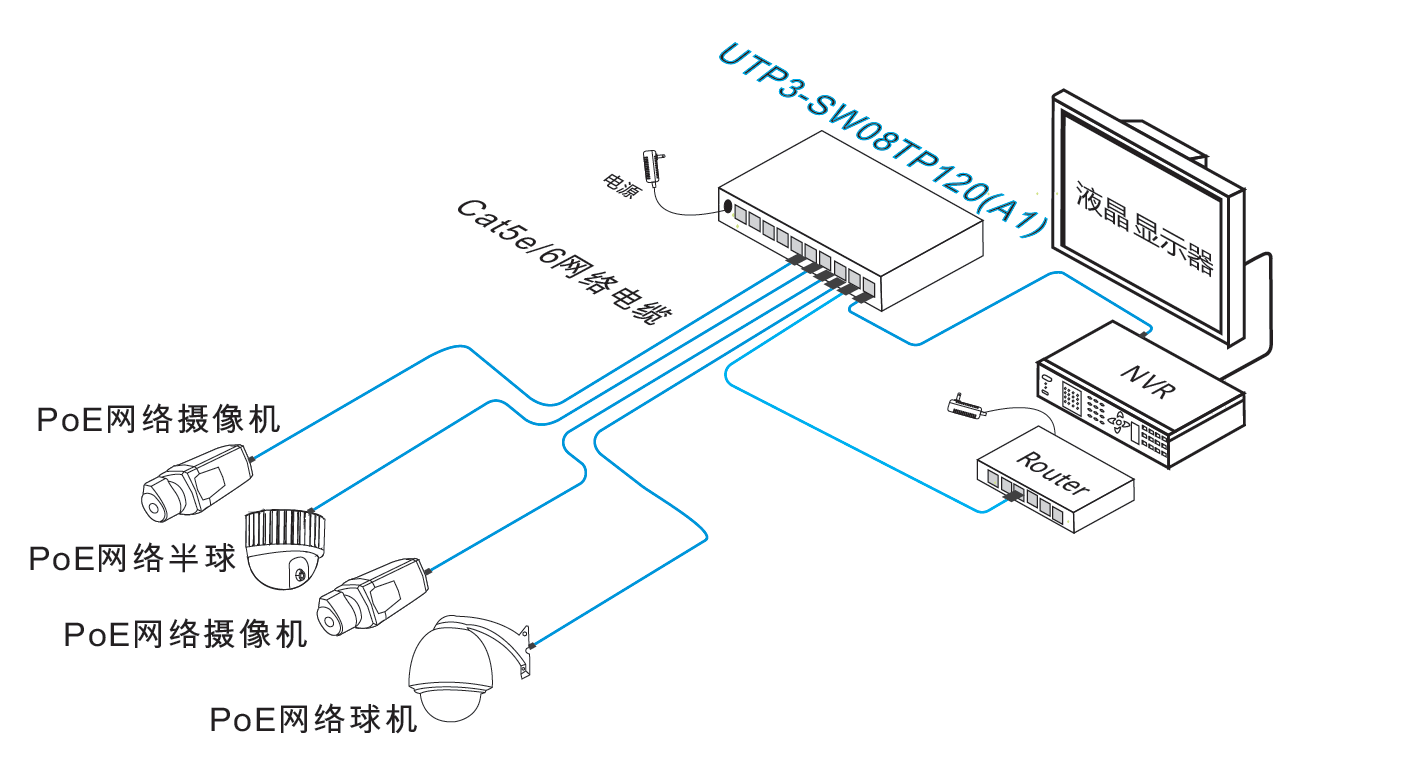 l UTP3-SW08-TP120-A1:8*10/100Base-TX PoE RJ-45端口, 2*1000Base-T RJ-45端口