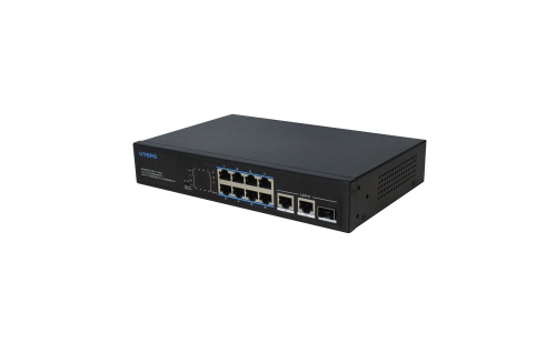 UTP3-SW0802T1F-SP120-D12A是8口百兆sPoE交換機(jī)(12V)。 交換機(jī)可提供8個百兆以太網(wǎng)RJ-45下聯(lián)端口、2個百兆上聯(lián)電口和1個百兆上聯(lián)光口。交換機(jī)所有下聯(lián)RJ-45端口都支持PoE供電,單個端口PoE功率最高可達(dá)15W,整機(jī)PoE功率可達(dá)115W。