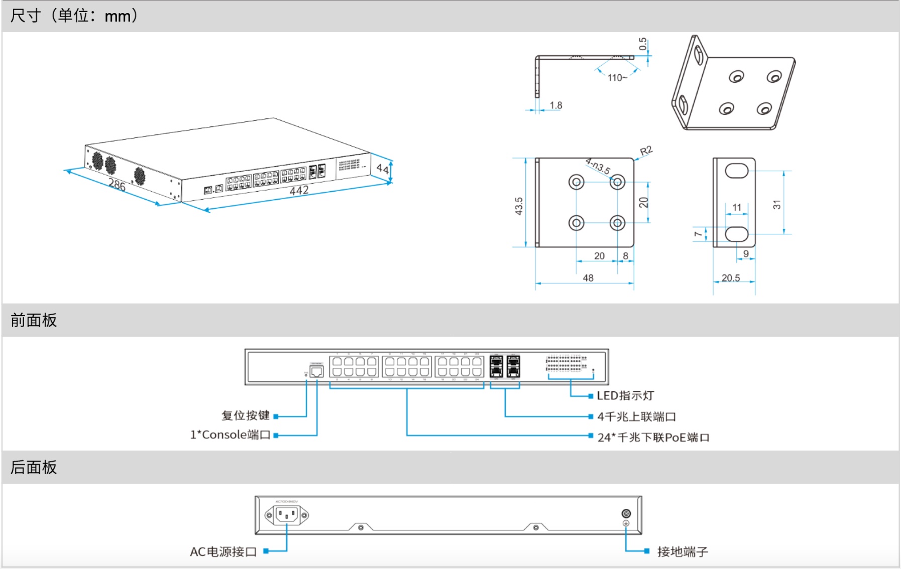 支持機架式、壁掛式、桌面式安裝 |