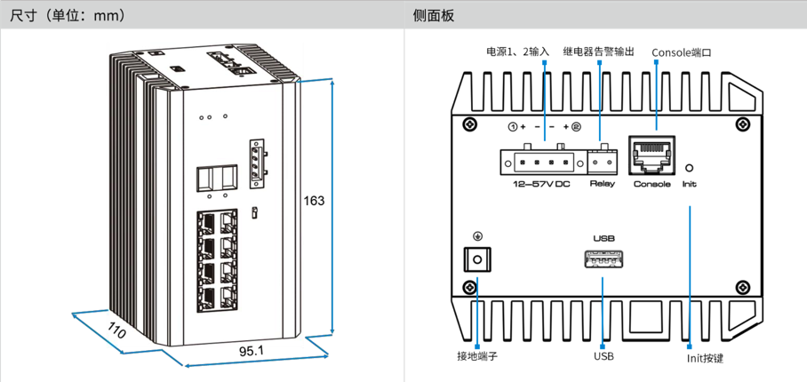 ● 冗余電源設(shè)計,12~57V寬壓輸入